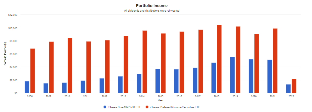 Видно, что в кризисные годы доход по префам остается стабильным, а вот по акциям снижается. Зато в период роста доход по префам также остается стабильным, а вот обычки наоборот начинают нагонять.
