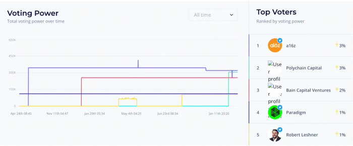 Засновник Compound є лише 5-м найбільшим виборцем. Найкращі виборці — це компанії венчурного капіталу, тому що вони дійсно мають багато грошей для інвестування. Але якщо, скажімо, 2 мільярди людей інвестують по долару кожен, вони покриють поточну ринкову капіталізацію Compound у 1,3 мільярда доларів і матимуть повне право голосу. Найбільший виборець/власник COMP, Андріссен Горовіц, володіє COMP лише на 39 мільйонів доларів. Легко уявити, як армія GameStop або DOGE мобілізується та стає найкращою групою виборців/власників у COMP, якщо вони цього захочуть.