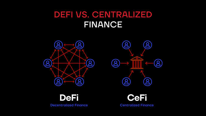 Пояснивши визначення, давайте повернемося до питання: що таке децентралізовані фінанси порівняно з централізованими? Важко дати визначення defi, не згадуючи про CeFi. Як уже згадувалося в нашому огляді defi вище, основні відмінності між DeFi та CeFi або TradiFi, як відомо централізованим фінансуванням, включають управління за допомогою смарт-контрактів проти державних/банківських установ і можливість кожного брати участь. Але відмінностей більше.