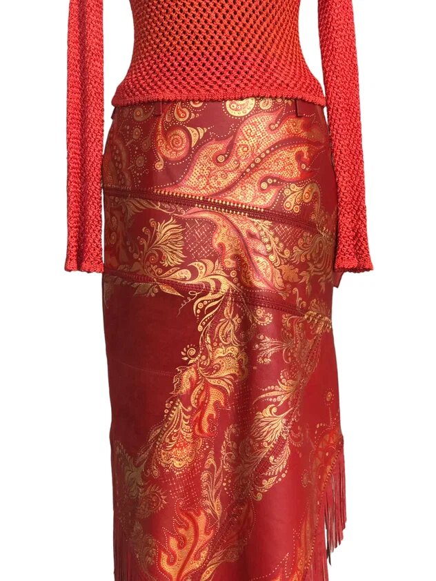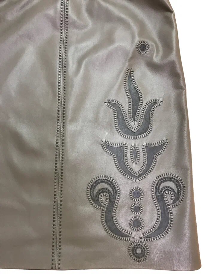 Что делать, если на юбку не хватает кожи одного цвета? Варианты могут быть различные: сделать клинья разных цветов, придумать разные асимметричные вставки... А я решила эту проблему по-другому.