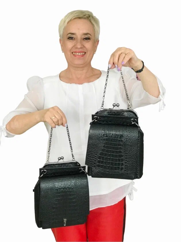 Ассортиментная линия женских сумок "Рета" создана мной по типу сумок, которые носили еще наши бабушки в 50-х, 60-х годах прошлого века. Я хорошо помню сумку синего цвета с рамочным замком-фермуаром, которая была у моей бабушки. Правда, она эту сумку уже не носила, а хранила в ней свои документы.