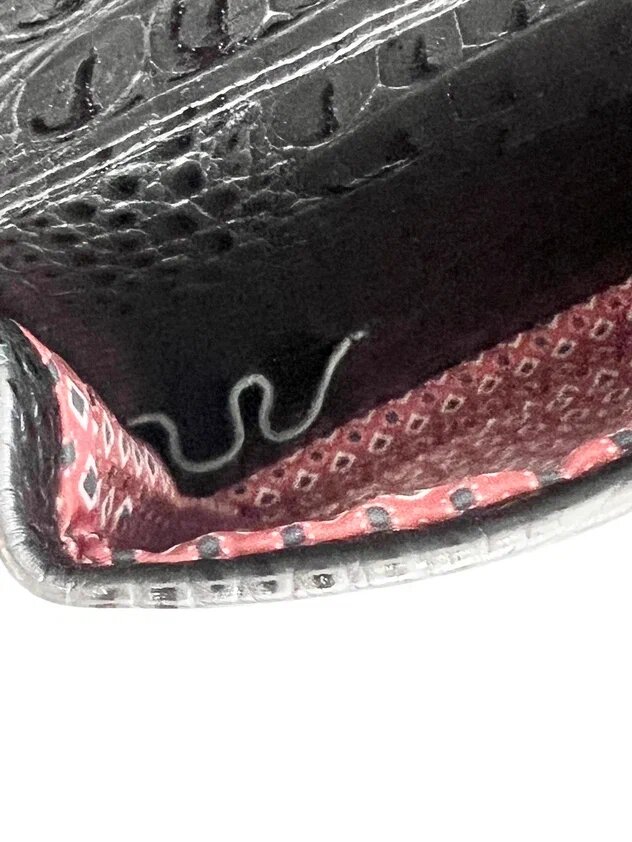 В этих карманах подкладка пришита не сразу на входе в карман, а к кожаным подзорам. Обычно в сумках так не делают, а мы перенесли на сумки технологию пошива карманов в одежде. Кожаные подзоры защищают карман от повреждений и загрязнений.