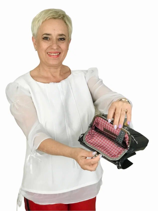 В сумке три отделения, в которых можно удобно разместить все, что обычно совершенно необходимо каждой женщине.
