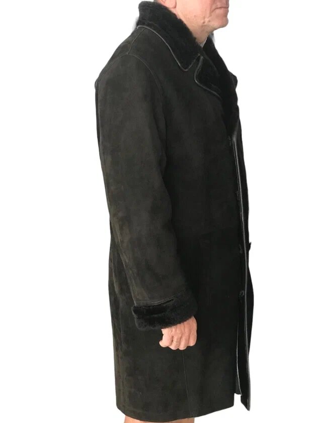 Плечевой пояс дубленки хорошо сидит на заказчике и не требует перекроя, а вот нижняя часть, по его мнению, широковата.