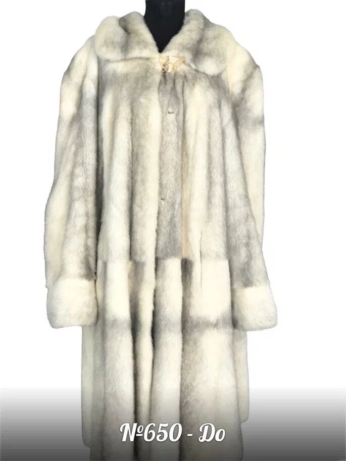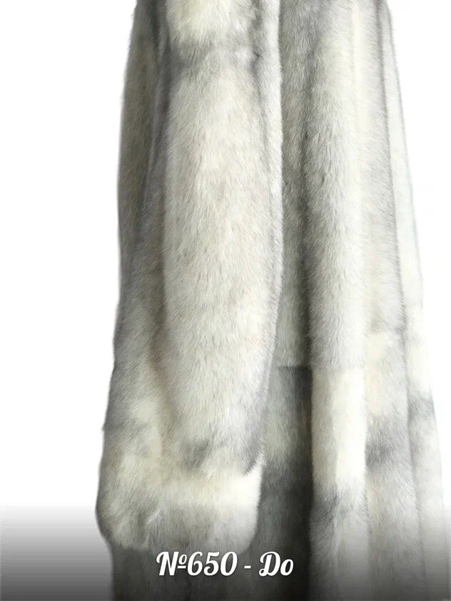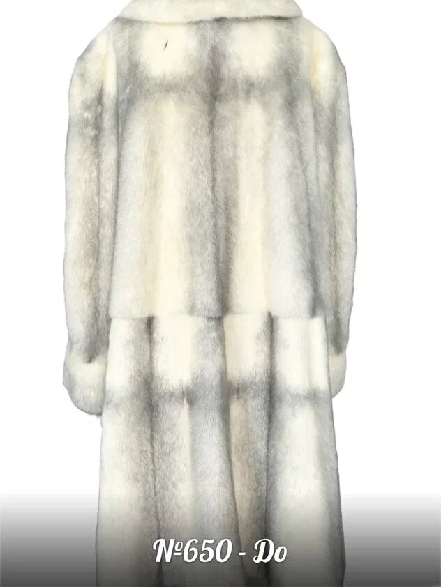 Мех пальто светлый с ярко выраженной темной линией вдоль хребта и поперечной темной линией, образующей крест. Светлый мех требует особого подхода к эксплуатации и хранению.