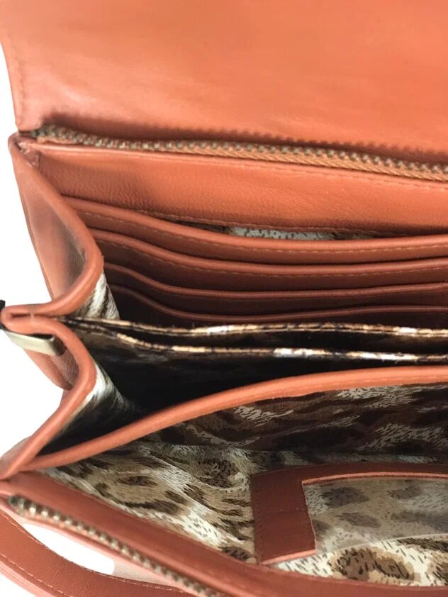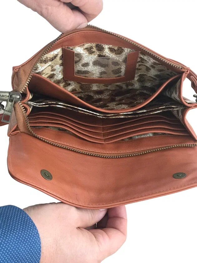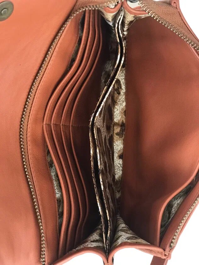Внутреннее пространство клатча изменилось совсем немного: по желанию заказчицы здесь было добавлено еще одно отделение.