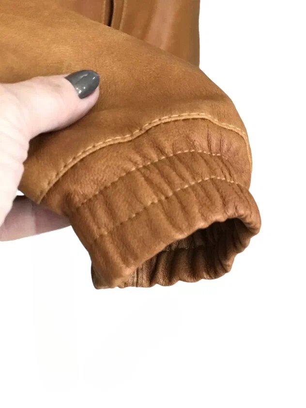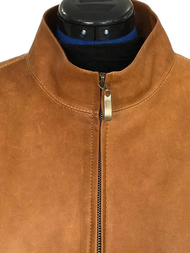 В соответствии с договоренностью с заказчиком, куртку мы сшили из кожи шеврет коричнево-рыжего цвета, выработанной из шкур овец и баранов. Шеврет - это самая распространенная одежная кожа, обладающая комплексом таких потребительских свойств, как высокая прочность, мягкость, технологичность.