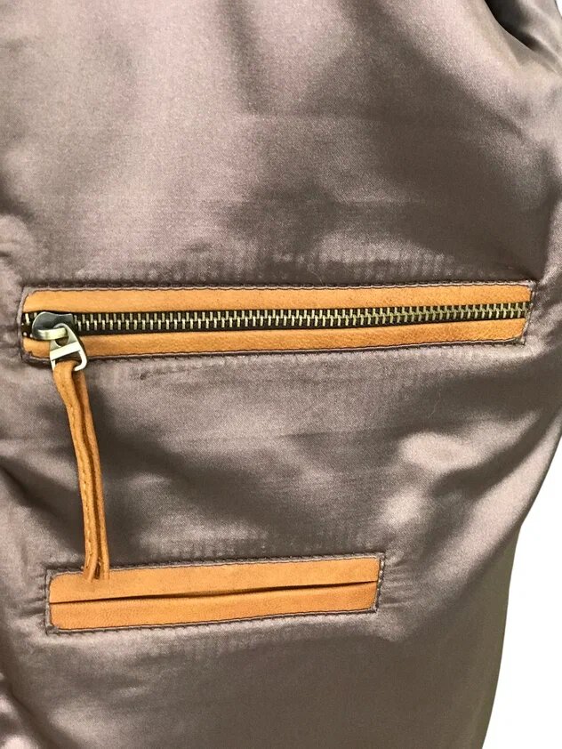 Внутри куртки сделаны три кармана: два на молниях и один открытый.