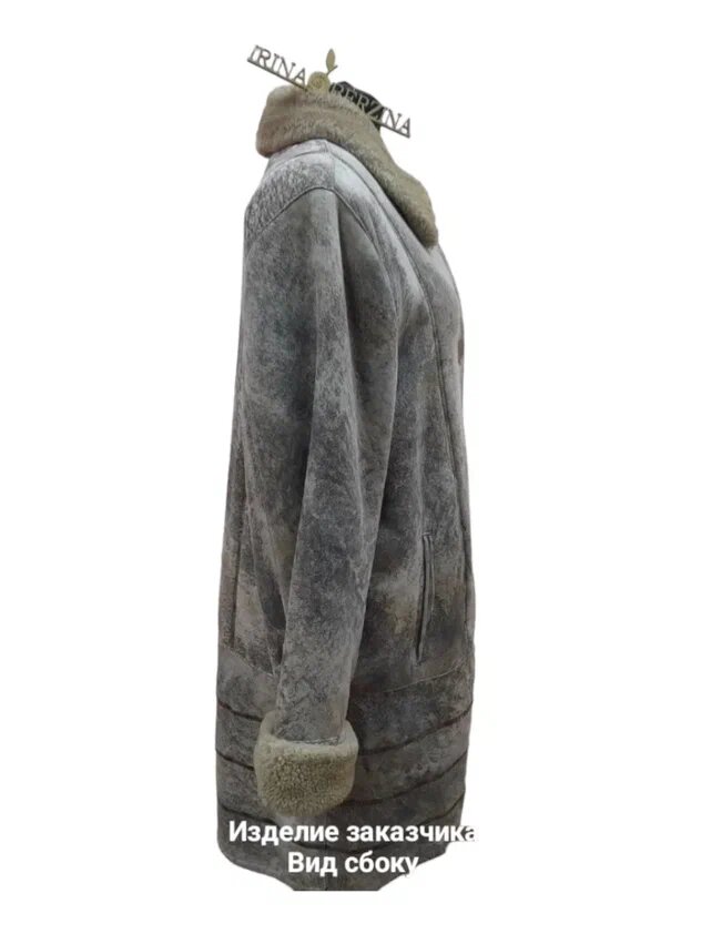 Все детали дубленки мы полностью перекроили в соответствии с лекалами по размеру нашей заказчицы. Длина дубленки сохранится такой же, как была.