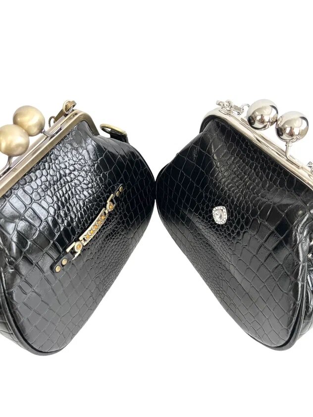 В глаза бросается то, что на передних стенках сумок прикреплены разные декоративные украшения.