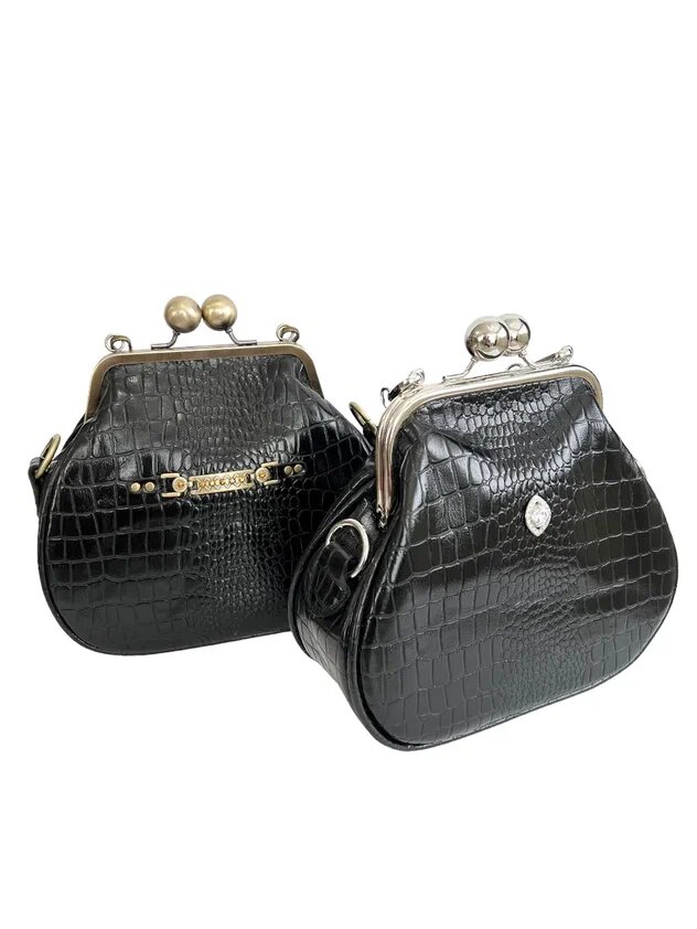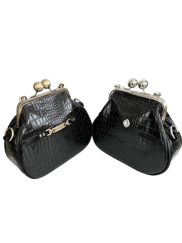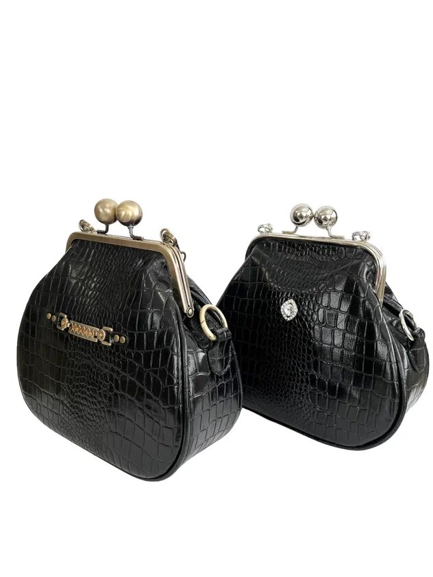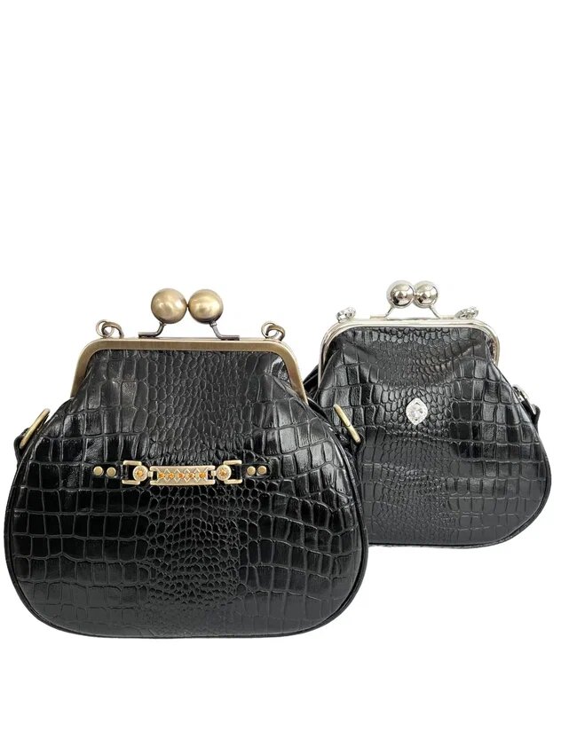 Вся остальная фурнитура в этих сумках одинаковая. Рамочные замки-фермуары шириной по 16 сантиметров с застежками в виде горошин обеспечивают легкий доступ к содержимому сумок.
