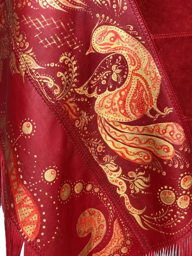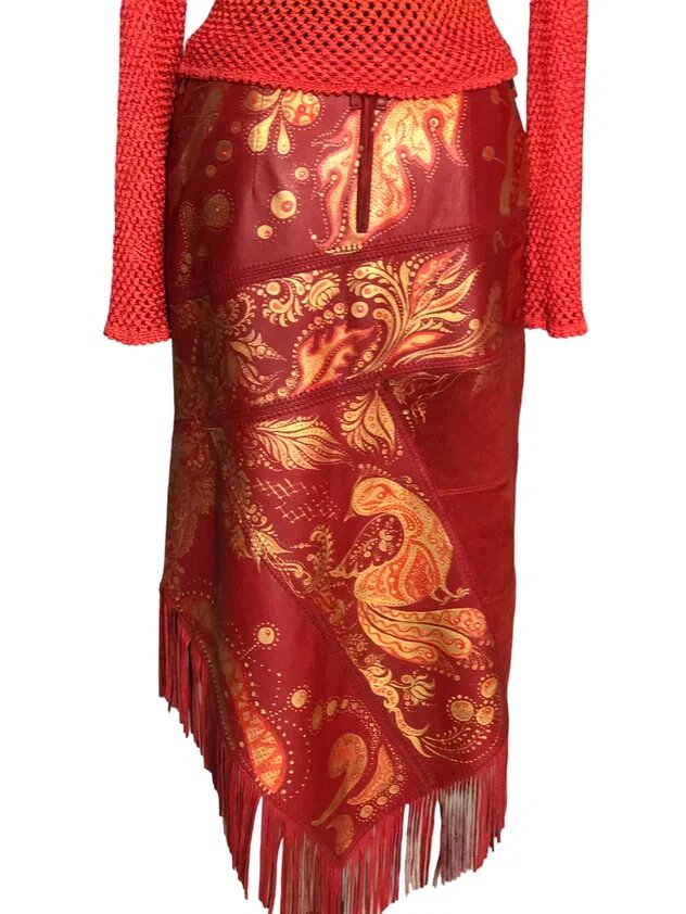 Так на этой юбке появилась жар-птица из русских сказок и другие мотивы, связанные с ней.