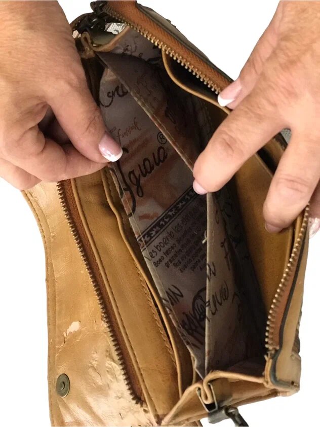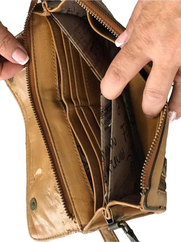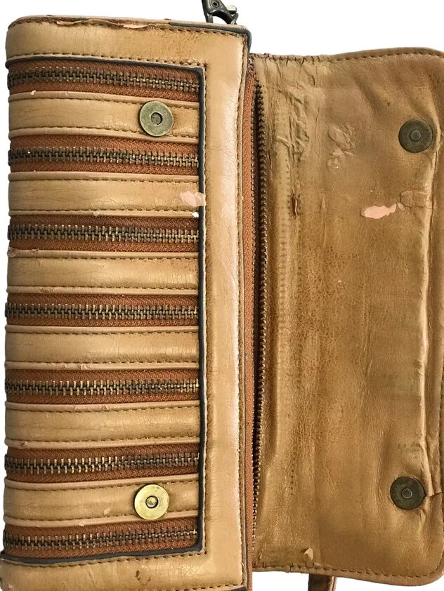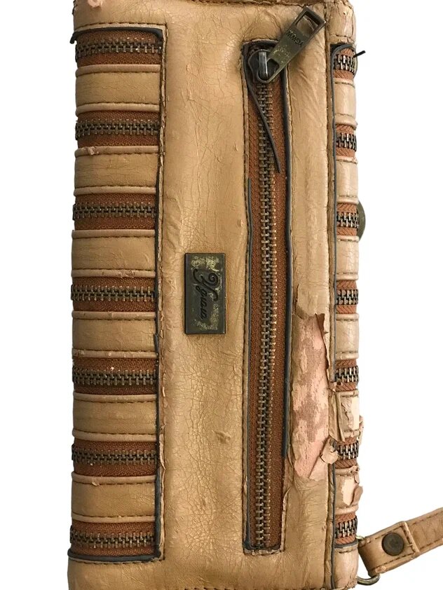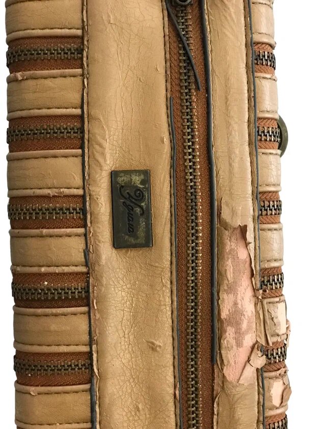 Вот в таком виде этот клатч поступил в наше ателье. Клатч явно был одной из самых любимых сумочек нашей заказчицы, и она решила его реанимировать, вернее, полностью воспроизвести почти в том же виде, но только из натуральной кожи.