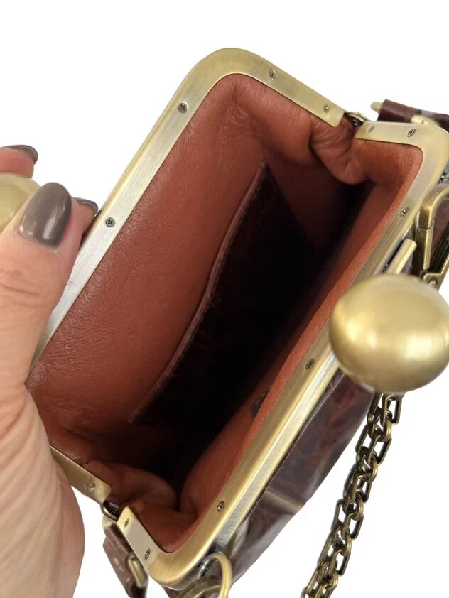 В сумке предусмотрены две ручки: короткая ручка-цепочка крепится непосредственно к фермуару.