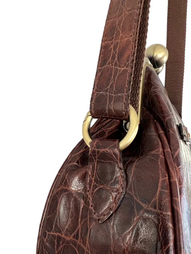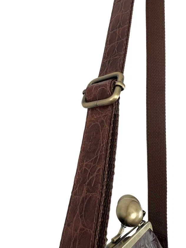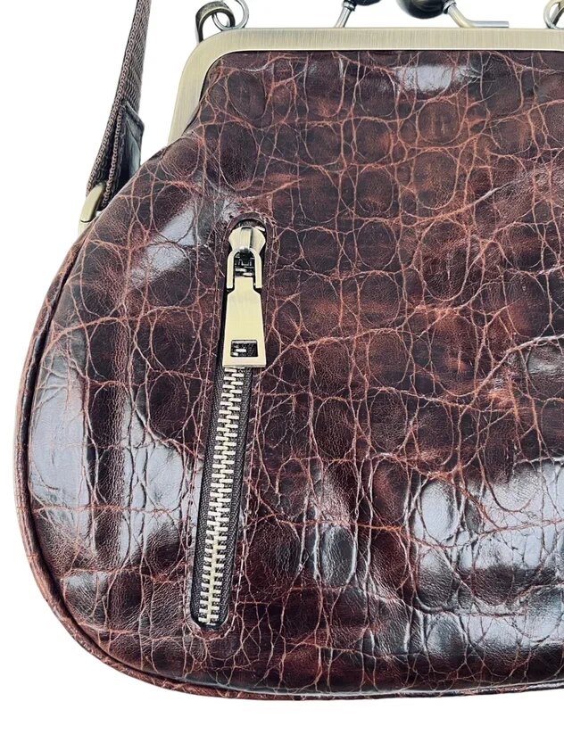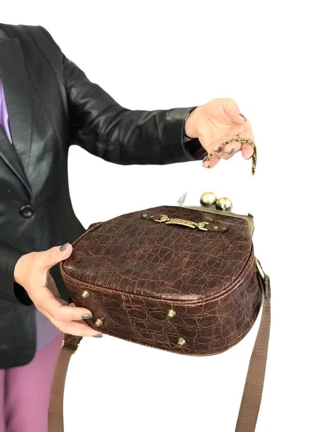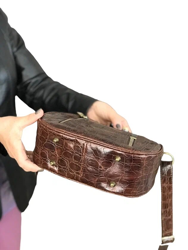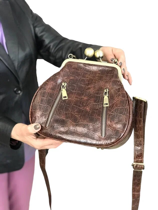 А для пошива сумки "Рета-11" я использовала кожу коричневого цвета с легким эффектом состаривания, с тиснением "под крокодила" и лаковым покрытием.