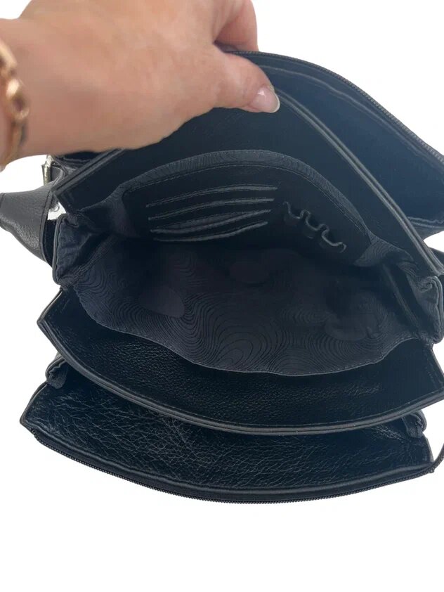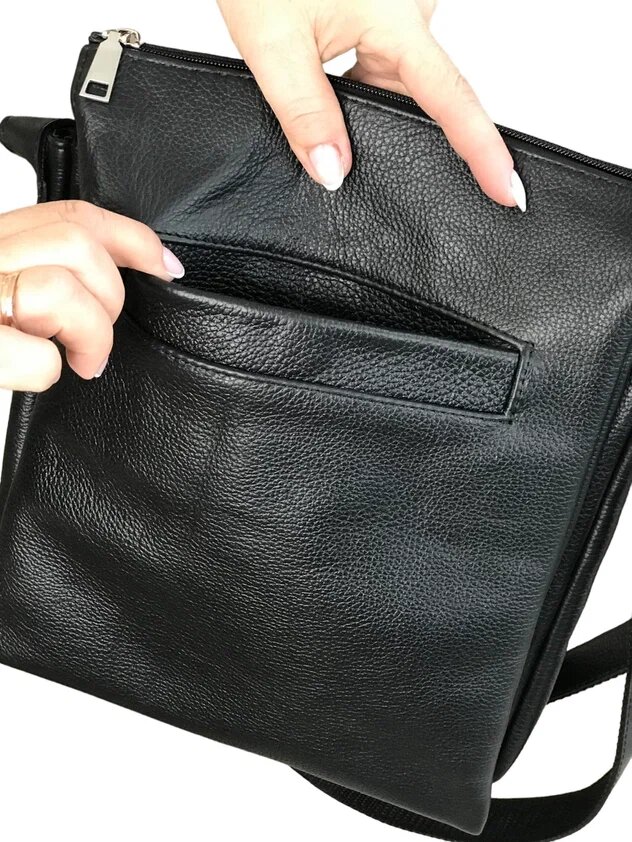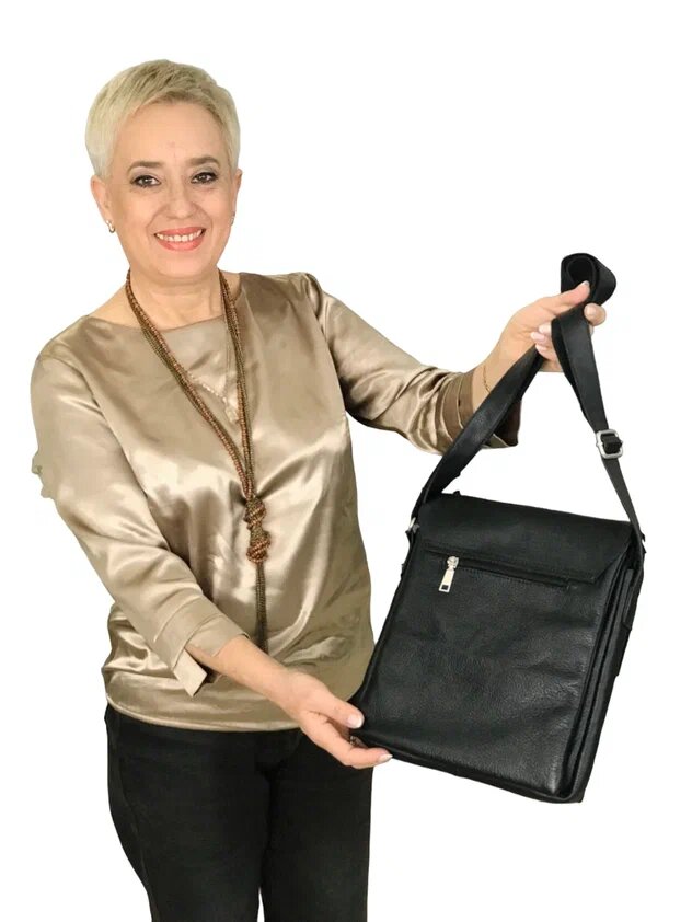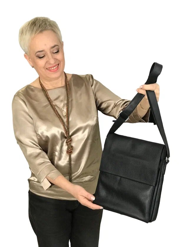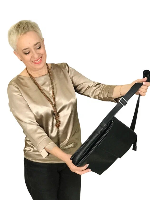 Носить сумку "Цезарь-01" удобно на плече. К боковым поверхностям сумки прикреплена широкая и прочная кожаная ручка.