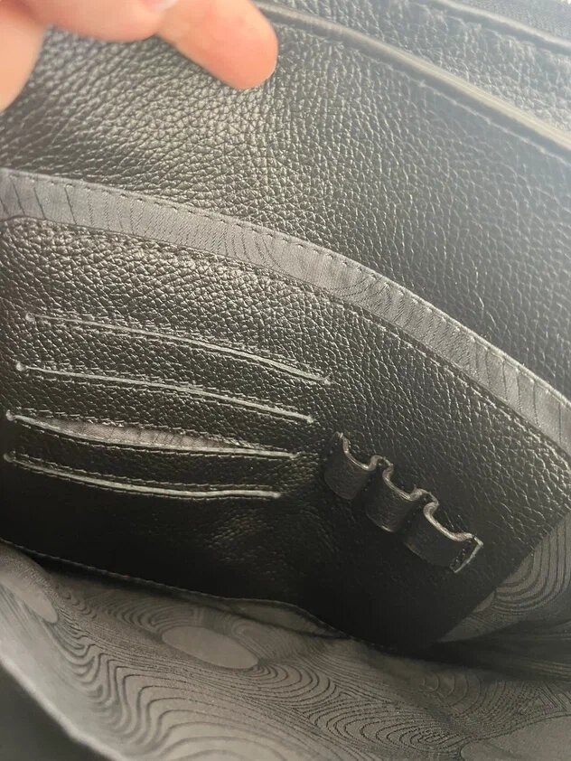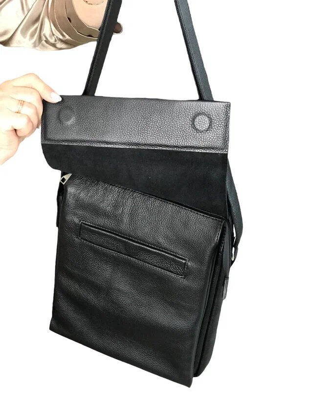 Наша клиентка из Казани заказала в ателье сумку в подарок своему мужу, а в качестве образца прислала мужскую сумку, которую они с мужем покупали как изделие из натуральной кожи.