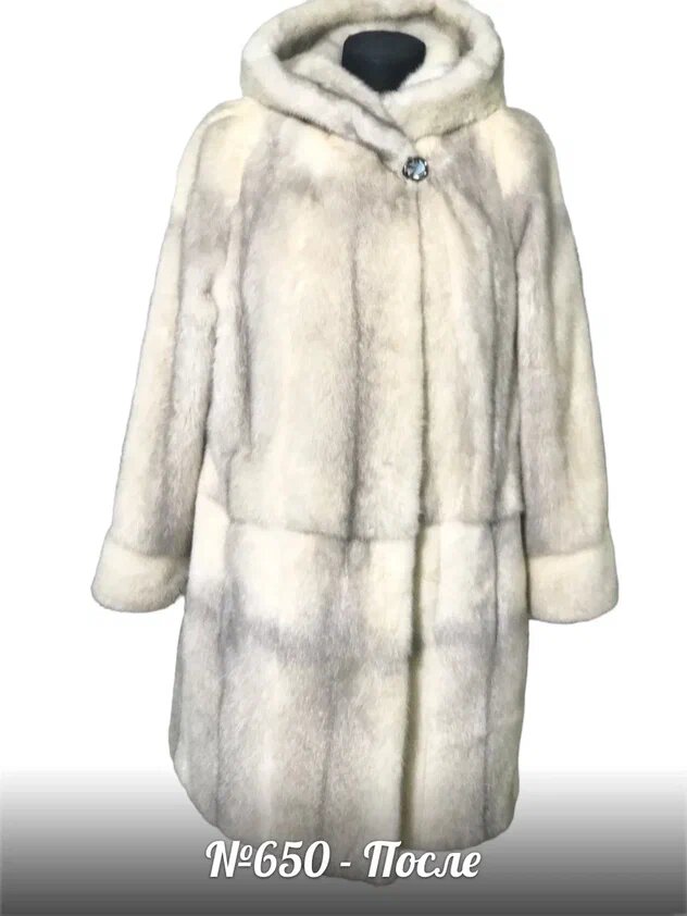 Особенностью любого светлого меха является то, что со временем он под действием атмосферных факторов в отдельных местах может пожелтеть, что ухудшает его внешний вид. Мех этого пальто не был исключением.