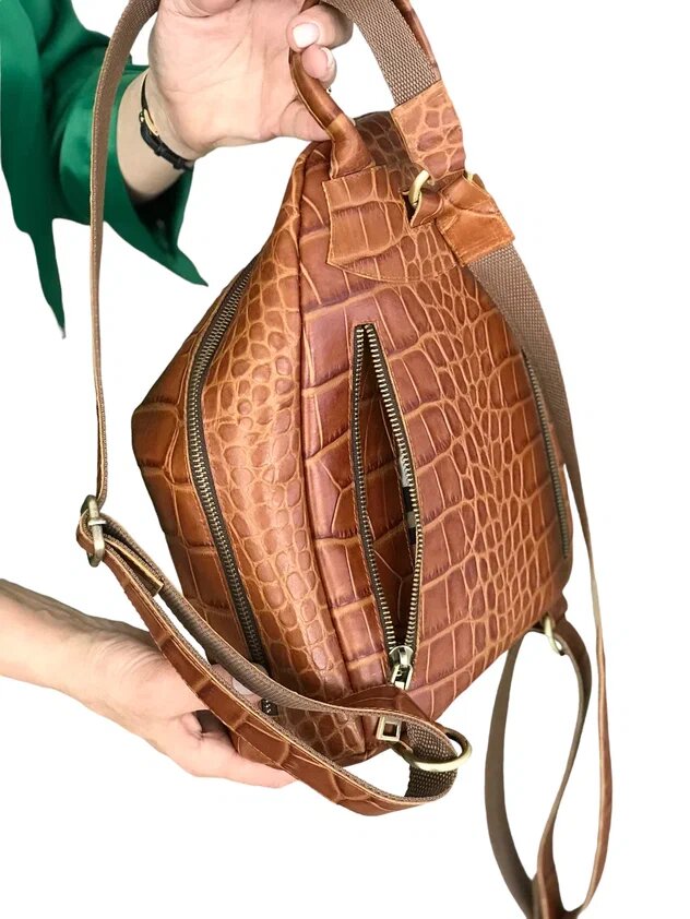 В этой статье я покажу один из наших рюкзаков "Данди-12", сшитый из кожи коричневого цвета, выработанной из шкур крупного рогатого скота с тиснением "под крокодила".