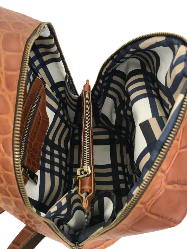 В качестве подкладки для внутреннего пространства рюкзака использована синтетическая ткань с набивным рисунком.