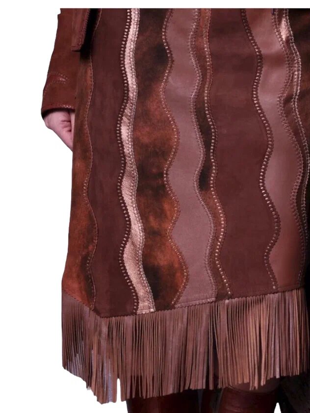 Ну а какой же стиль "вестерн" без бахромы? Низ я сделала с небольшим углом и пришила кожаную бахрому, которая всегда создает впечатление постоянного движения, что мне очень нравится.
