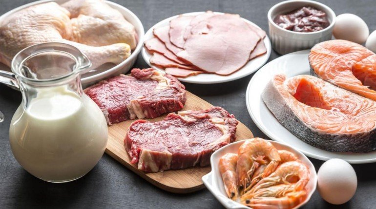 Разрешаются: нежирное мясо (курица, индейка, говядина), рыба и морепродукты, различные молочные продукты, яйца, грибы; возможно употребление орехов, некоторых фруктов и овощей.