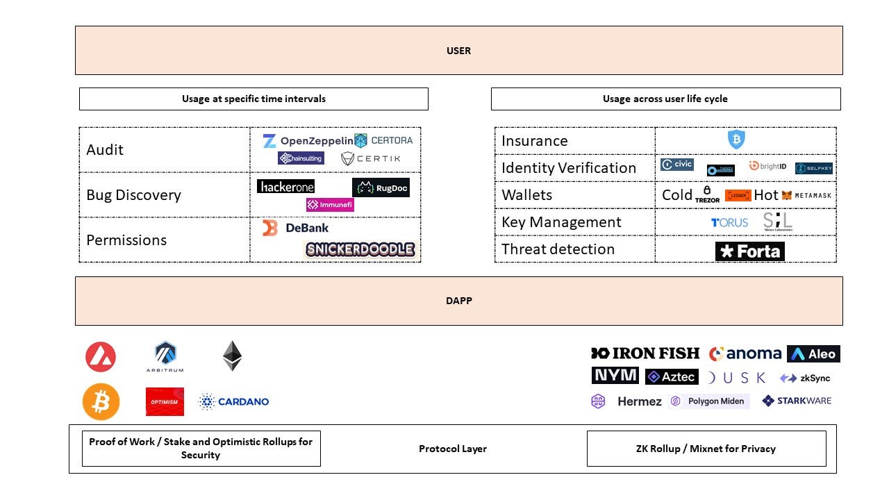 В рамках инфраструктурного стека поставщики конфиденциальности и безопасности выглядят особенно интересными, учитывая их важность в существовании блокчейна как для сторонников (крипто-пользователи), так и для противников (регуляторы, консерваторы / традиционные). Две стороны одной медали используются для аргументации в пользу принятия / ликвидации крипто-движения. В то время как сторонники выступают за полную конфиденциальность пользовательских данных и безопасность их сбережений / богатства без ненужных посредников или центральных органов власти, диссиденты ссылаются на анонимность и уязвимости зарождающейся технологии в качестве серьезной причины для беспокойства, способствующей незаконной деятельности.