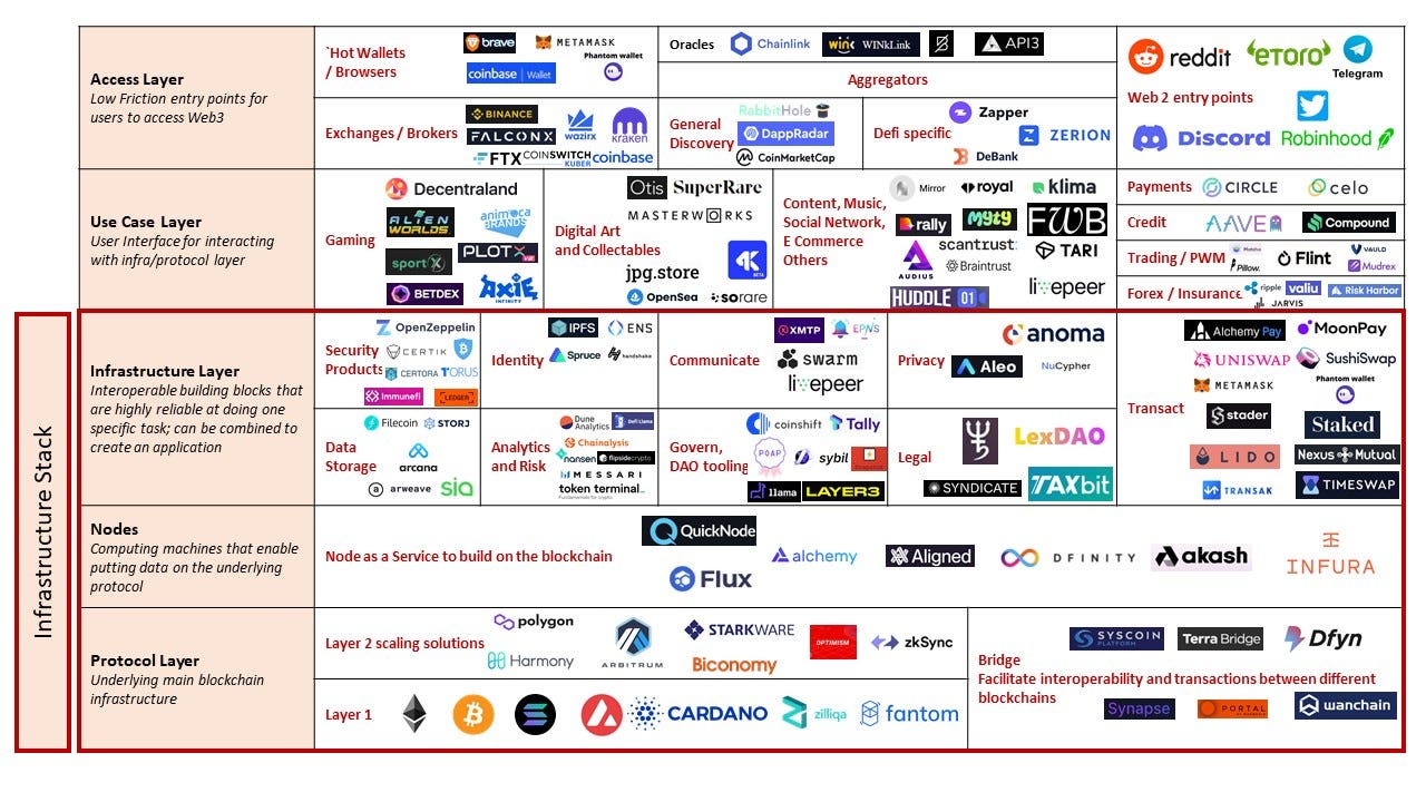 Поскольку мир продолжает двигаться в направлении Web 3.0, стек децентрализованной инфраструктуры будет играть важную роль в обеспечении широкого внедрения, помимо “новаторов” блокчейна, учитывая, что только 0,71% населения мира в настоящее время пользуется технологиями с поддержкой блокчейна. Постоянно появляются новые варианты использования децентрализованных технологий - будь то для управления цепочками поставок (Scantrust), изменения климата (Klima), публикации (Mirror), получения дохода (Axie Infinity) или иностранной помощи (Ukraine DAO) и других. Несмотря на споры вокруг разочарования отдельных лиц и низкого доверия к централизованным органам власти, таким как правительство или крупные гейткиперы Web 2.0, пользователи перейдут на альтернативы Web 3.0 не по идеологическим причинам, а по утилитарным. Это подчеркивает важность обеспечения надежности стека децентрализованной инфраструктуры, который делает Web 3.0 надежной альтернативой, заслуживающей доверия как разработчиков, так и пользователей.