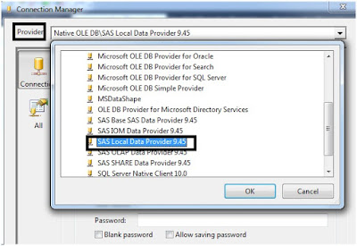 Here we need to select the provider as SAS Local Data Provider.