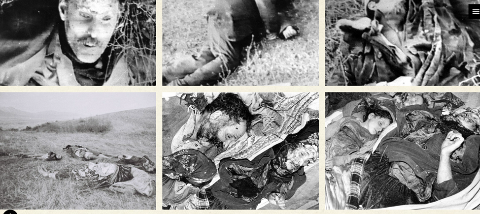 «...Нас привели на армянское кладбище. О том, что здесь произошло, мне трудно рассказать. 4 молодых турка-месхетинца и 3 азербайджанца были принесены в жертву на могиле армянского боевика. Несчастным отрезали головы. После этого солдаты и боевики на глазах у родителей стали истязать и убивать их детей. Потом трупы с помощью бульдозера сбросили в овраг. Потом привели двух азербайджанцев в форме Национальной армии и отвертками выкололи им глаза...»
