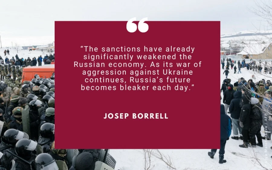 В ответ на российскую агрессию против Украины Европейский союз уже единогласно принял 13 пакетов санкций – это самая крупные санкции, которые ЕС когда-либо вводил. Эти санкции были скоординированы с множеством партнеров и единомышленников.
