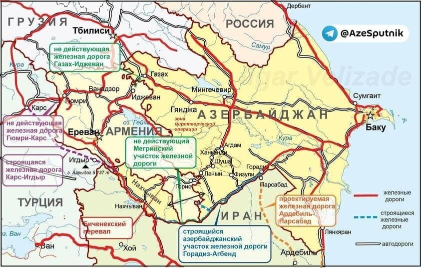 Карта разблокирования коммуникаций, составленная политологом Ильгаром Велизаде / Sputnik Азербайджан