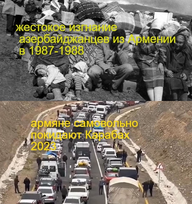 1. Страх за содеянные преступления по отношению миренного азербайджанского населения, уверенность, что азербайджанцам им не простят, погнал их из нагорной части Карабаха.(Карабахский народ не хотел покидать Родину до последней секунды, однако не получил от Баку никаких гарантий безопасности, сказал журналистам глава Нагорного Карабаха Самвел Шахраманян в военном пантеоне "Ераблур", комментируя вынужденное переселение карабахцев в Армению в 2023 г. https://am.sputniknews.ru/20240927/karabakhtsy-do-kontsa-ne-khoteli-uezzhat-no-baku-ne-dal-garantiy-bezopasnosti--lider-nk-81141271.html)