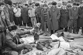 Эта варварская акция предварительно была заправлена подготовленными акциями предателей из КГБ с захватом власти различными группами созданной ее сомнительных людей в различных районах Азербайджана, разрушением советско-иранской границы с участием погранвойск КГБ СССР, посредством набранных в различных республиках подонков из того же КГБ организации "армянских" погромов в Баку. Все это должно было послужить основанием для ввода войск в Баку с использование античеловеческих, зверских варварских методов против мирного населения. Основная цель горбачевской своры было ускорить центробежные силы для развала СССР, вызвать антирусские настроения в союзных республиках. Об этом много написано. Я просто приведу фотогалерею об этой подлой акции коммунистических властей.