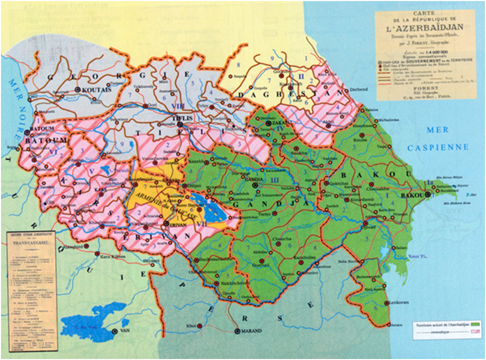 28 мая 1918 года провозглашается Азербайджанская Демократическая Республика (АДР). Территория АДР определялась историческим подавляющим большинством проживания азербайджанского населения.