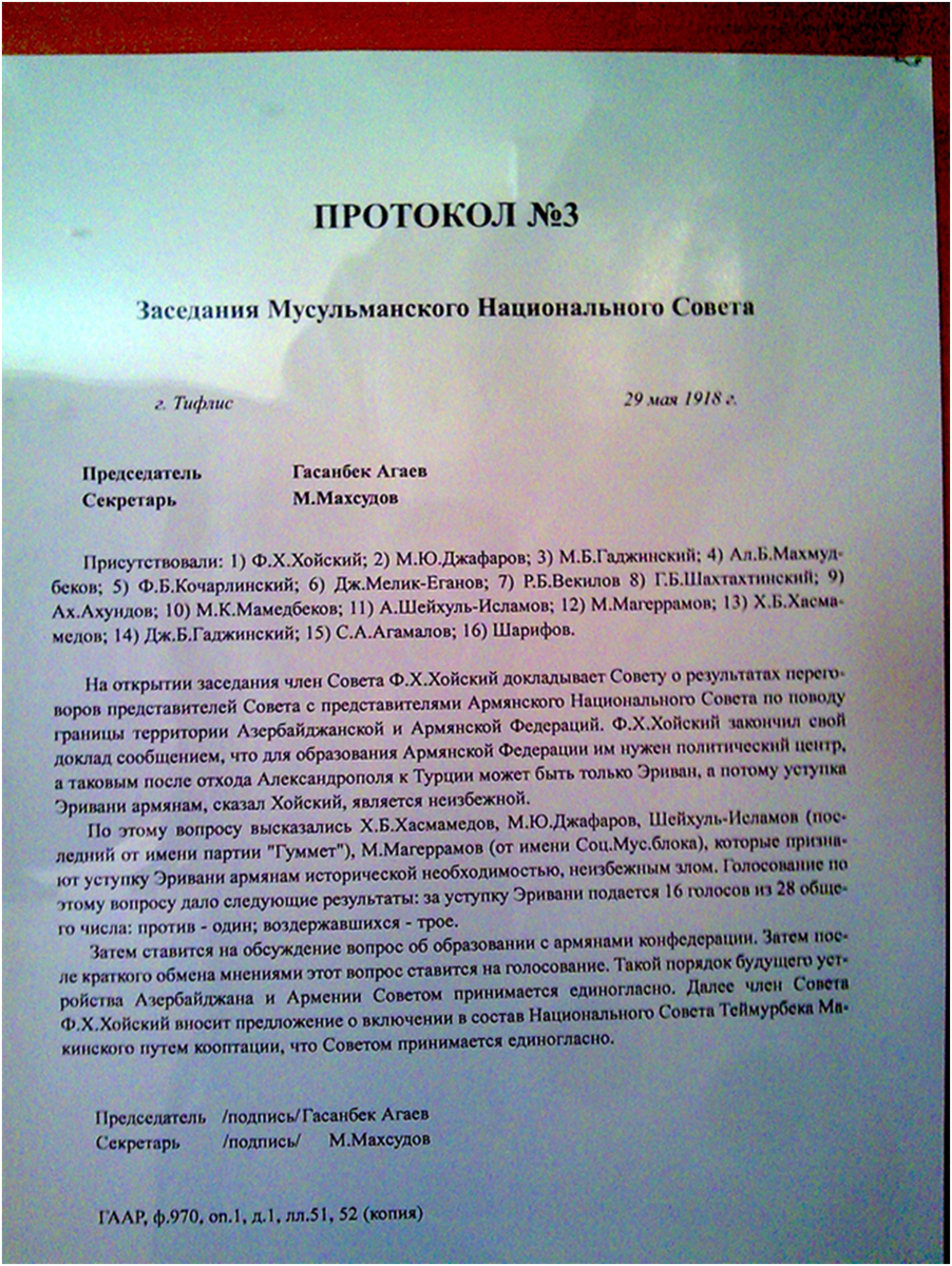 29 мая 1918 года под давлением западных стран молодое незащищенное государство вынуждено принять решение о передаче Эриванского уезда армянам для создания армянской государственности на Южном Кавказе.