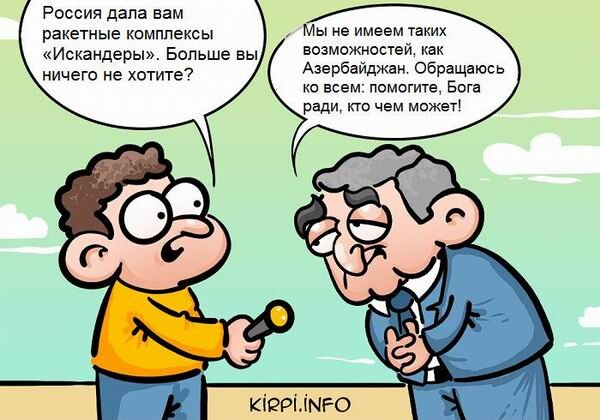«Сепаратистам, выдумавшим в настоящее время себе вымышленные имена, один называет себя президентом, другой – министром, третий, не знаю, председателем парламента, этому сборищу шутов следует, наконец, знать, что нельзя испытывать наше терпение», - сказал, в частности, президент Азербайджана Ильхам Алиев в интервью Азербайджанскому телевидению.