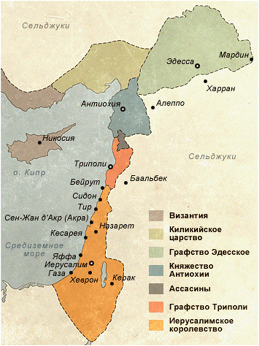 Напомним, что после серии крестовых походов на Ближнем Востоке появляются создаваемые крестоносцами новые государства. https://dzen.ru/a/Ynyfnyi4AEZ9xRe_