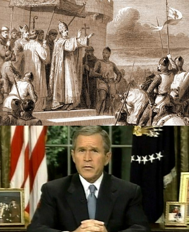 11 сентября 2006 г. президент Буш обратился к нации с речью, которая поистине достойна соответствующего места в истории наряду с речью Папы Римского Урбана II, отправившего западноевропейское рыцарство в первый крестовый поход.