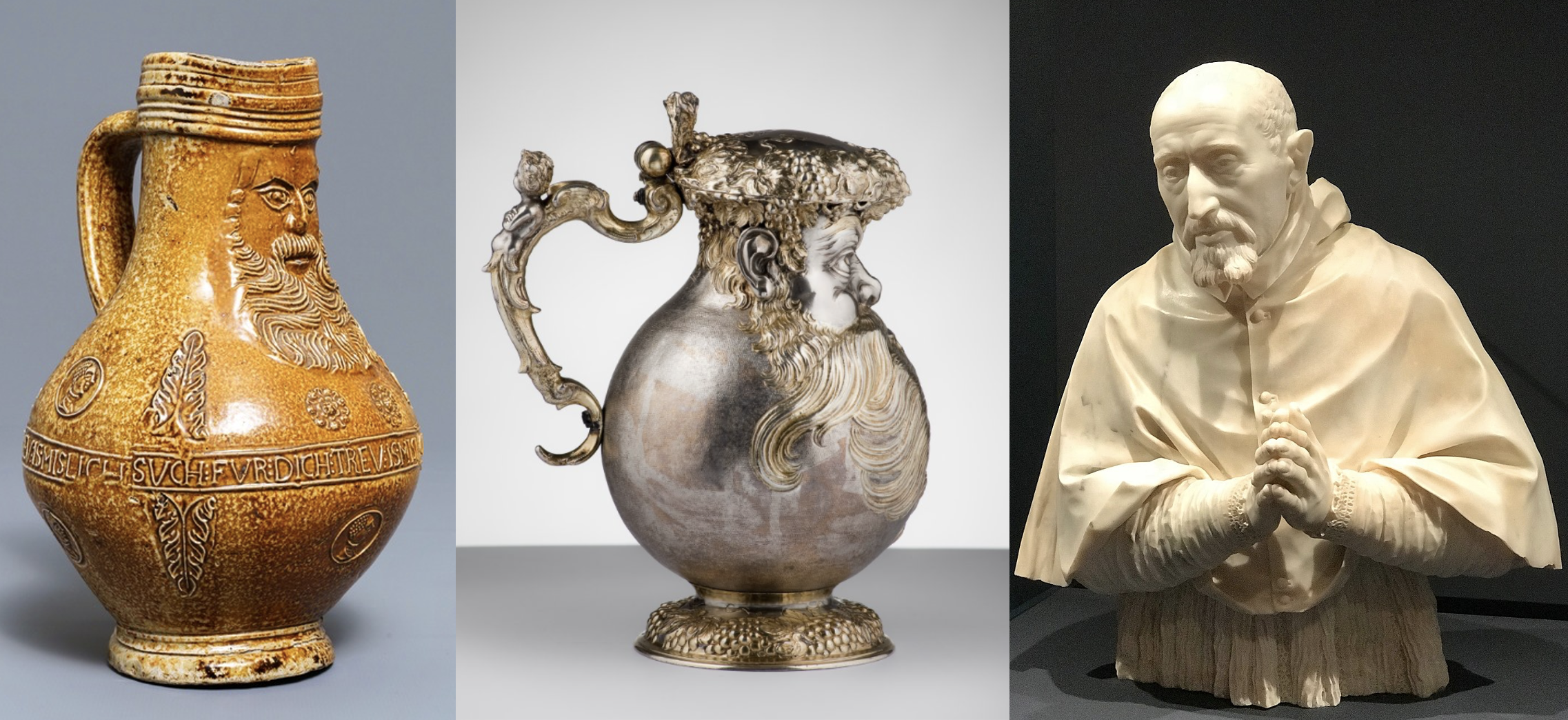 В Музее Тиссена-Борнемисы в Мадриде мое внимание привлек серебряный кувшин с рельефным изображением бородатого лица. На этикетке он был обозначен как кувшин Бартман или Беллармин. Я задался целью выяснить происхождение этих названий и оказалось, за ними скрывались увлекательные истории.