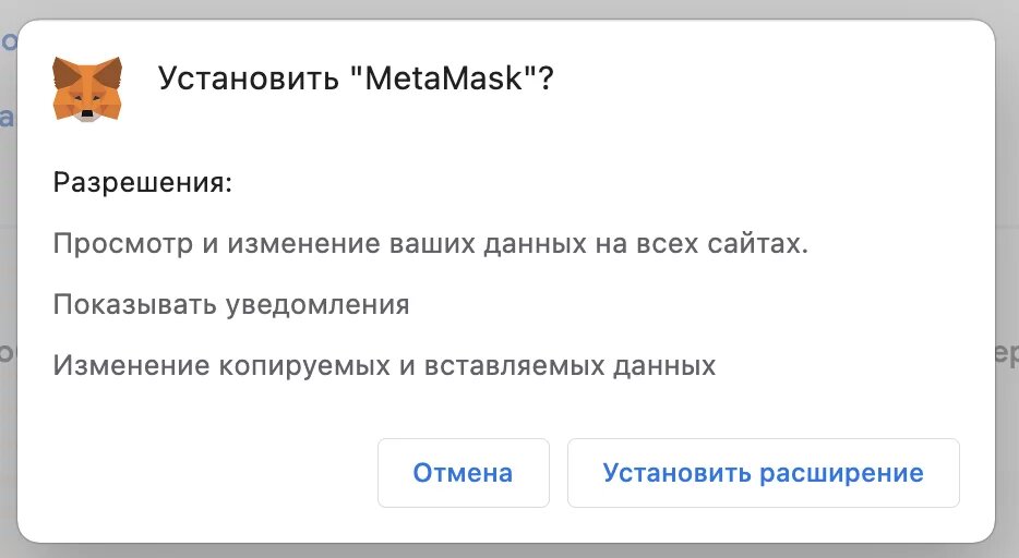Plaginni brauzerga o'rnatganingizda, bunday ogohlantirish oynasi paydo bo'ladi. Ilova hamma narsaga kirish huquqiga ega bo'lishi haqida dahshatli so'zlar yozilgan, ammo siz Metamaskdan foydalanish uchun buni qabul qilishingiz kerak.