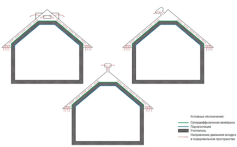 Сегодня в частном домостроении большой популярностью пользуются дома с мансардными и чердачными крышами. Естественно, при таком выборе отдельно поднимается вопрос об утеплении и вентиляции кровли. Если вы выбрали чердачную кровлю, однозначно правильным решением будет обустройство теплоизоляции на чердаке дома, например, только в нижней его части. Если же вы оборудуете мансарду – то теплоизоляция помещается между стропилами, изолируясь нижним слоем подкровельной пленки «Паробарьер» и верхним – мембраной «Евробарьер». Также следует учесть тот факт, что дом в процессе своей и вашей жизнедеятельности «дышит», тем самым выпуская через утеплитель пар изнутри. При этом образование конденсата в слое теплоизоляции – неприятный побочный эффект, которого можно избежать, предусмотрев во время монтажа крыши правильную циркуляцию воздушных масс в подкровельном пространстве и защиту утеплителя. Однако это не все напасти, подстерегающие вас на пути недобросовестного отношения к собственной крыше – также при излишней влажности начнут страдать деревянные балки и металлические крепления. Мы не будем сейчас говорить об архиважной роли паро- и гидроизоляционных пленок в этом вопросе, мы сделаем акцент на вспомогательном решении, а именно правильной вентиляции и подшивке кровельных свесов. Обратите внимание, что в данном случае вы должны предусмотреть не только традиционное вентилируемое пространство, но и дополнительный воздушный канал – «тягу», которая будет соответствовать вектору направления «карниз-конек» и выведет влагу через вентиляционное отверстие наружу. Но сейчас самое время рассказать вам о том, как облегчить задачу вентиляции кровли и сделать «дыхание» вашего дома легким и приятным.