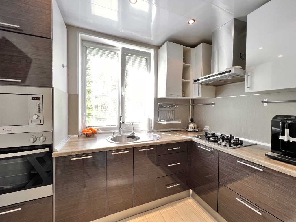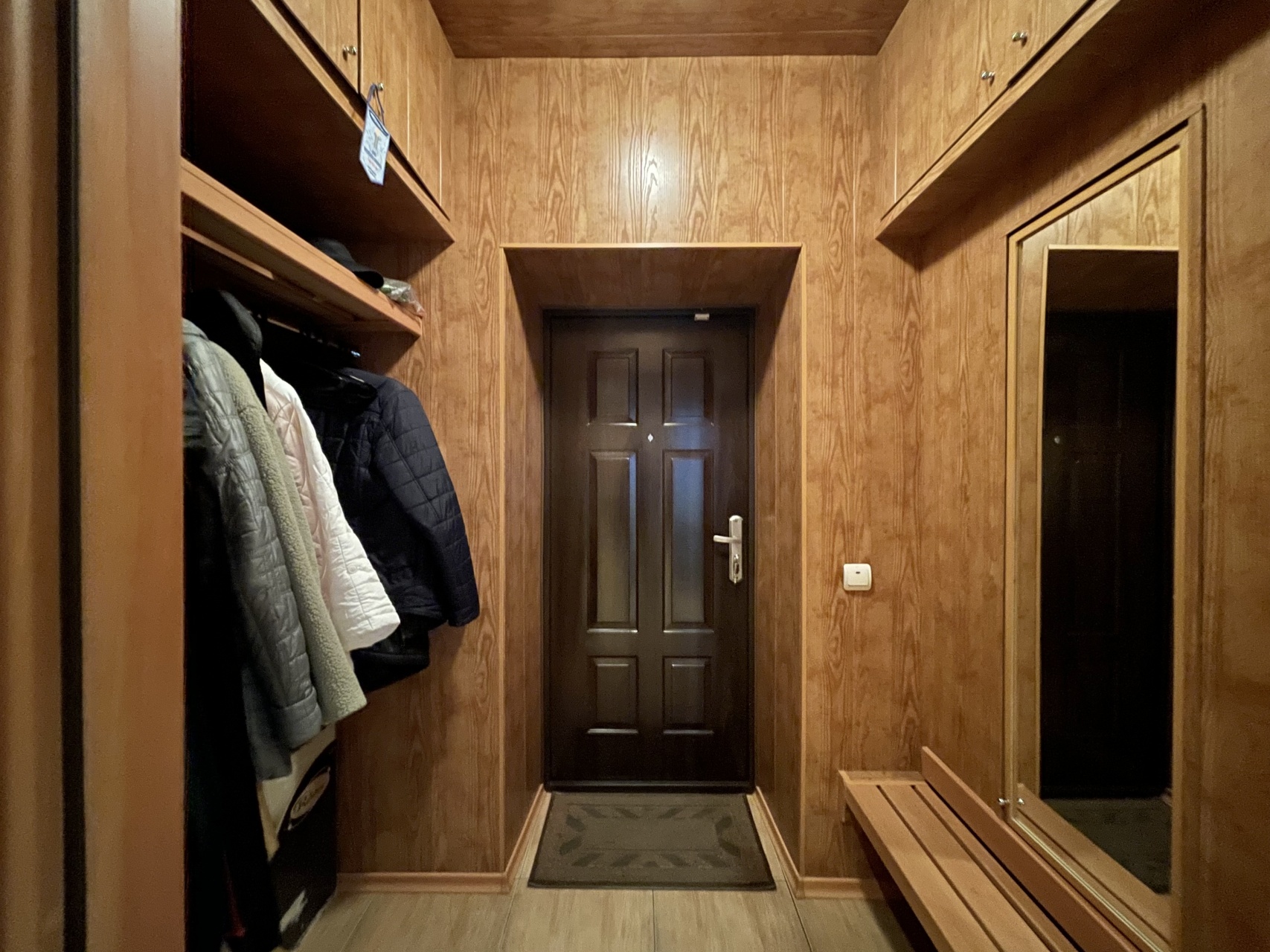 Ухоженная парадная. Всего 4 квартиры на лестничной площадке. В квартире остается кухонный гарнитур со встроенной техникой, вместительный гардеробный шкаф в коридоре.