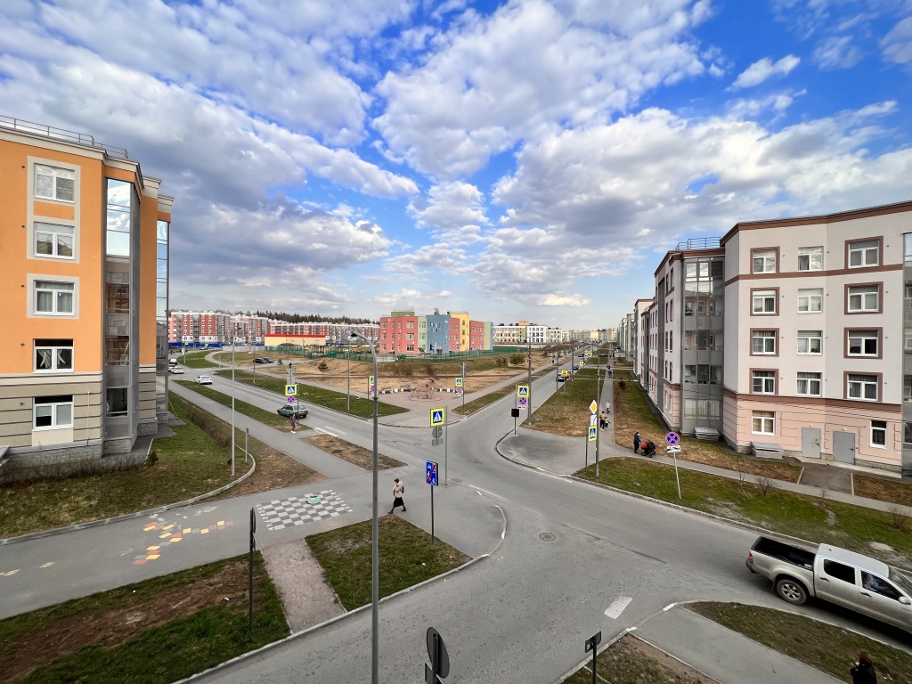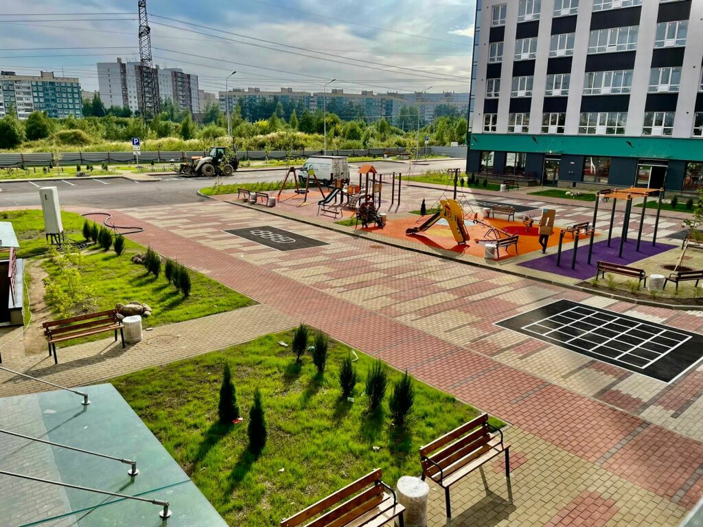 Закрытая благоустроенная территория, двор с охраняемой парковкой. Рядом - школы и детские сады, а также спортивная школа. Окна выходят во двор, в сторону Шуваловского проспекта, оз. Лахтинский Разлив и ул. Савушкина.