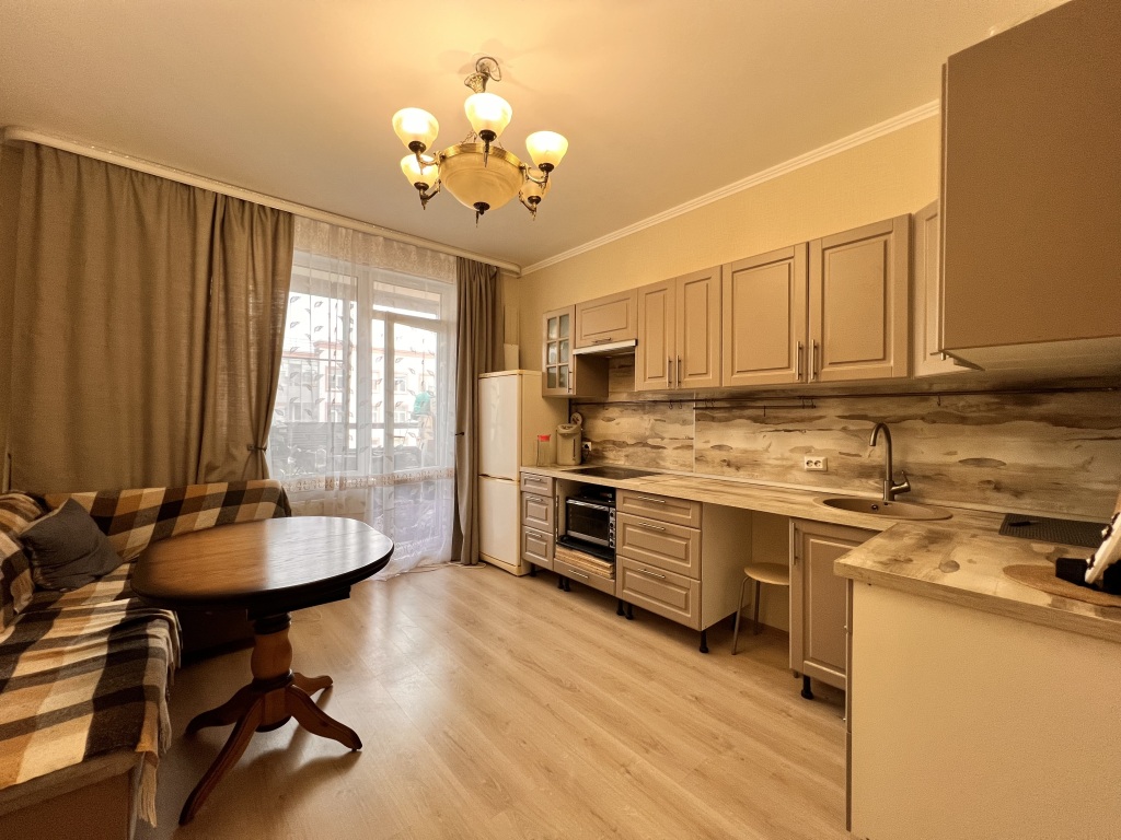 В доме есть колясочная, на лестничной площадке всего 4 квартиры. Окна квартиры выходят в тихий зеленый двор и на улицу. В подарок покупателю остаётся кухонный гарнитур со встроенной техникой, остальная мебель — по договоренности.