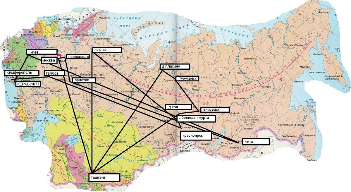 Жизненная карта передвижения Святителя Луки.