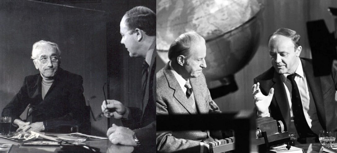 В студии с Ж-И.Кусто и Т.Хейердалом.