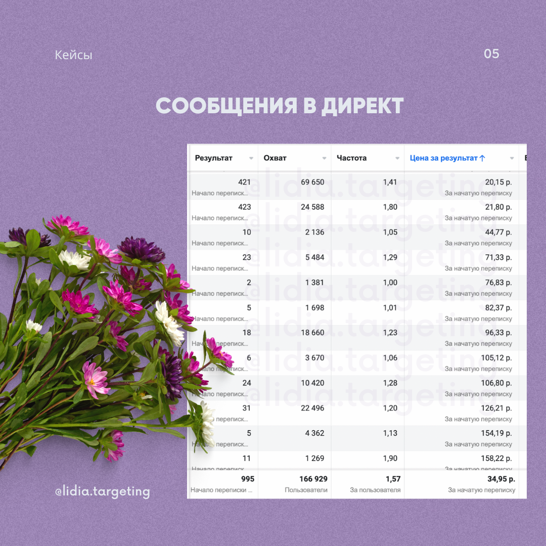 Кейс. Регистрации на вебинар по 0.69$ таргет для онлайн-школы Флористики