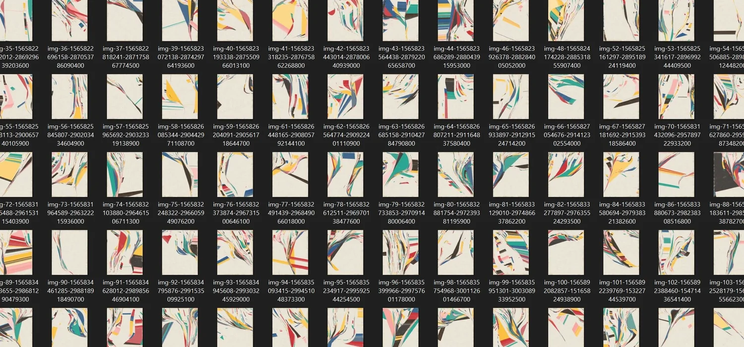 Основа основ коллекции - алгоритм, который именуется flow field (течение пространства). Если очень хочется забить голову матаном с примерами кода и формул, то это можно сделать по этому линку. Если вкратце, то идея в том, что весь рисунок состоит из хаотично изогнутых кривых. По словам Тайлера, он использовал эту технику в десятках работ, начиная аж с 2016-го. Главная же идея Фидензы, что эти кривые никогда не пересекаются. Как бы они ни скручивались, ни изгибались, как бы близко они не были расположены, пересечения никогда не случится.