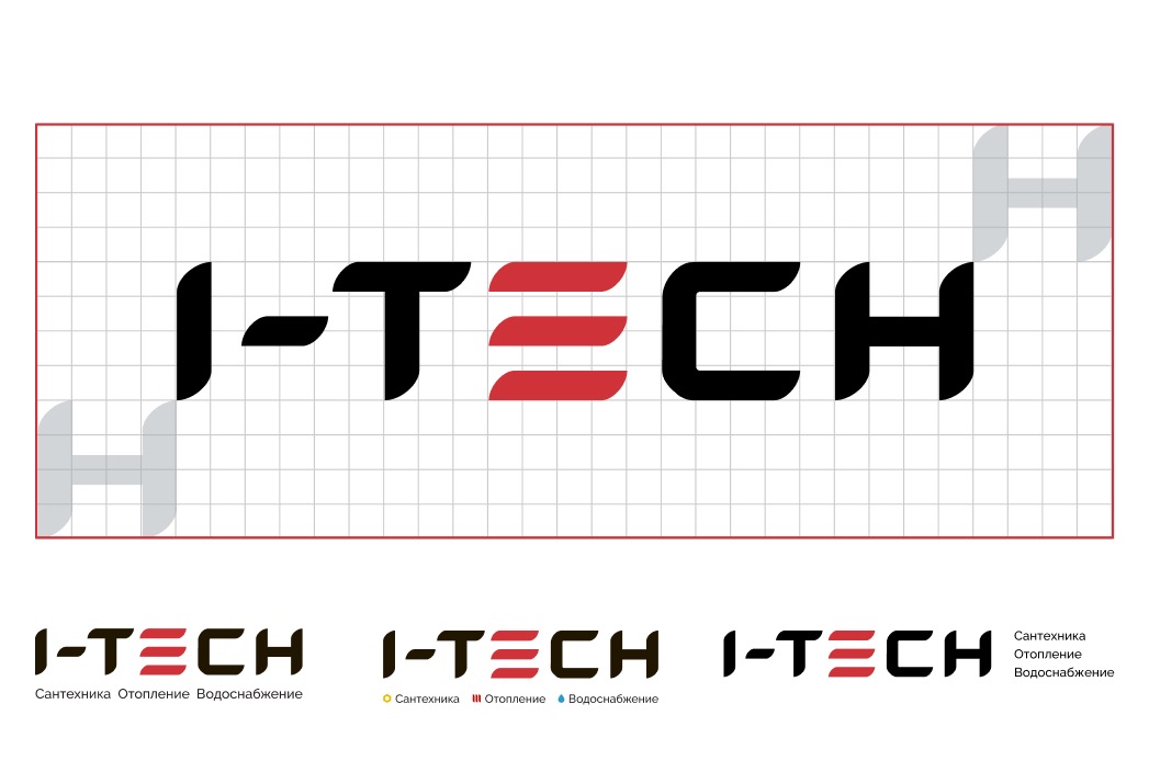 При исследовании выявили, что горизонтальные линии следует уменьшить (для визуальной компенсации), дать больше места букве I, T и тире между ними, а также исправить другие недочеты построения, замеченные на сетке.
